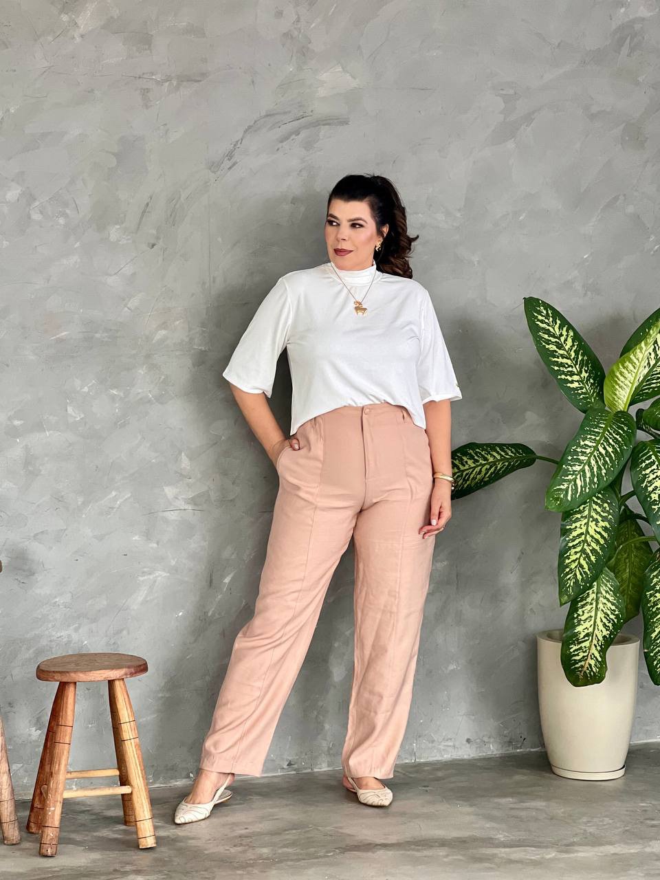 A Calça Greice une sofisticação e conforto em uma modelagem atemporal, ideal para composições versáteis e cheias de estilo. Confeccionada em tecido leve e de toque macio, oferece excelente caimento e fluidez, garantindo conforto ao longo do dia.